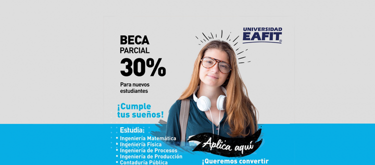 Esta beca es un beneficio económico del 30% que se otorgará a estudiantes bachilleres para la matrícula de los pregrados en Contaduría Pública, Literatura, Ingeniería Física, Ingeniería Matemática, Ingeniería de Procesos e Ingeniería de Producción.