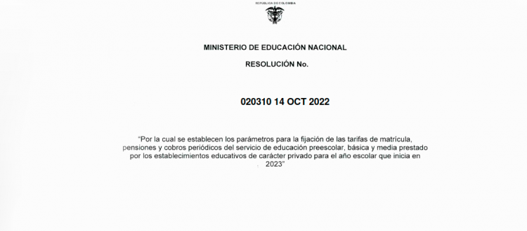 “Por la cual se establecen los parámetros para la fijación de las tarifas de matricula, pensiones y cobros periódicos del servicio de educación preescolar, básica y media prestado por los establecimientos educativos de carácter privado para el año escolar que inicia en 2023”