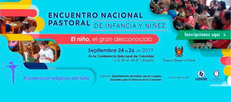 La Conferencia Episcopal a través de sus departamentos “Estado Laical y Lugares Eclesiales para la vivencia de la comunión”, realizará el encuentro Nacional de delegados y agentes que prestan sus servicios en la Pastoral de la Infancia y niñez en las diferentes jurisdicciones eclesiásticas de Colombia, del 24 al 26 de septiembre en la sede de la Conferencia ubicada en la cra. 58 #80-87 frente a la escuela militar.