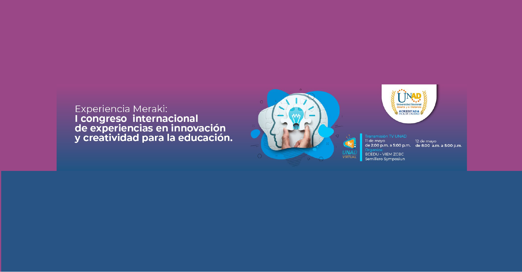 La Universidad Nacional Abierta y a Distancia-UNAD, como institución académica comprometida con la educación para todos y con su Escuela de Ciencias de la Educación –ECEDU–, consideran muy importante que la comunidad académica nacional e internacional, conozcan sobre las tendencias en prácticas e investigación en innovación educativa que están transformando los diferentes contextos mundiales. Con este propósito, la ECEDU-ZCBC la VIEM y el semillero de investigación Symposion proponen la realización de Experiencia Meraki: I Congreso Internacional de Innovación y Creatividad