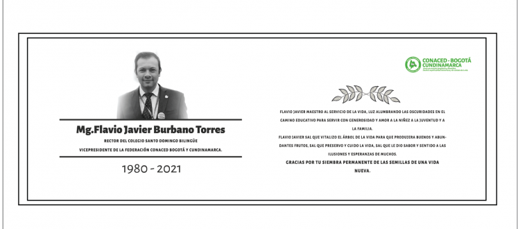 La Federación Católica de Educación, CONACED Bogotá & Cundinamarca, con este sencillo video, rinde un homenaje muy sentido al Mg. Flavio Javier Burbano Torres rector del colegio Santo Domingo Bilingüe, Vicepresidente de la Federación CONACED Bogotá y Cundinamarca
