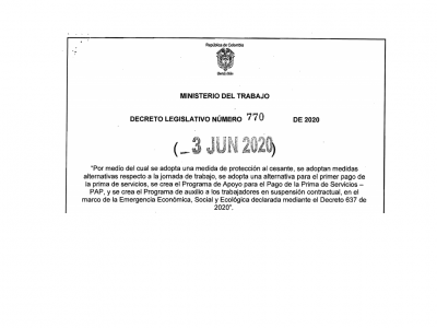 El ministerio del trabajo mediante el decreto 770 del 3 de junio de 2020 “Por medio del cual se adopta una medida de protección al cesante, se adoptan medidas alternativas respecto... Leer Más